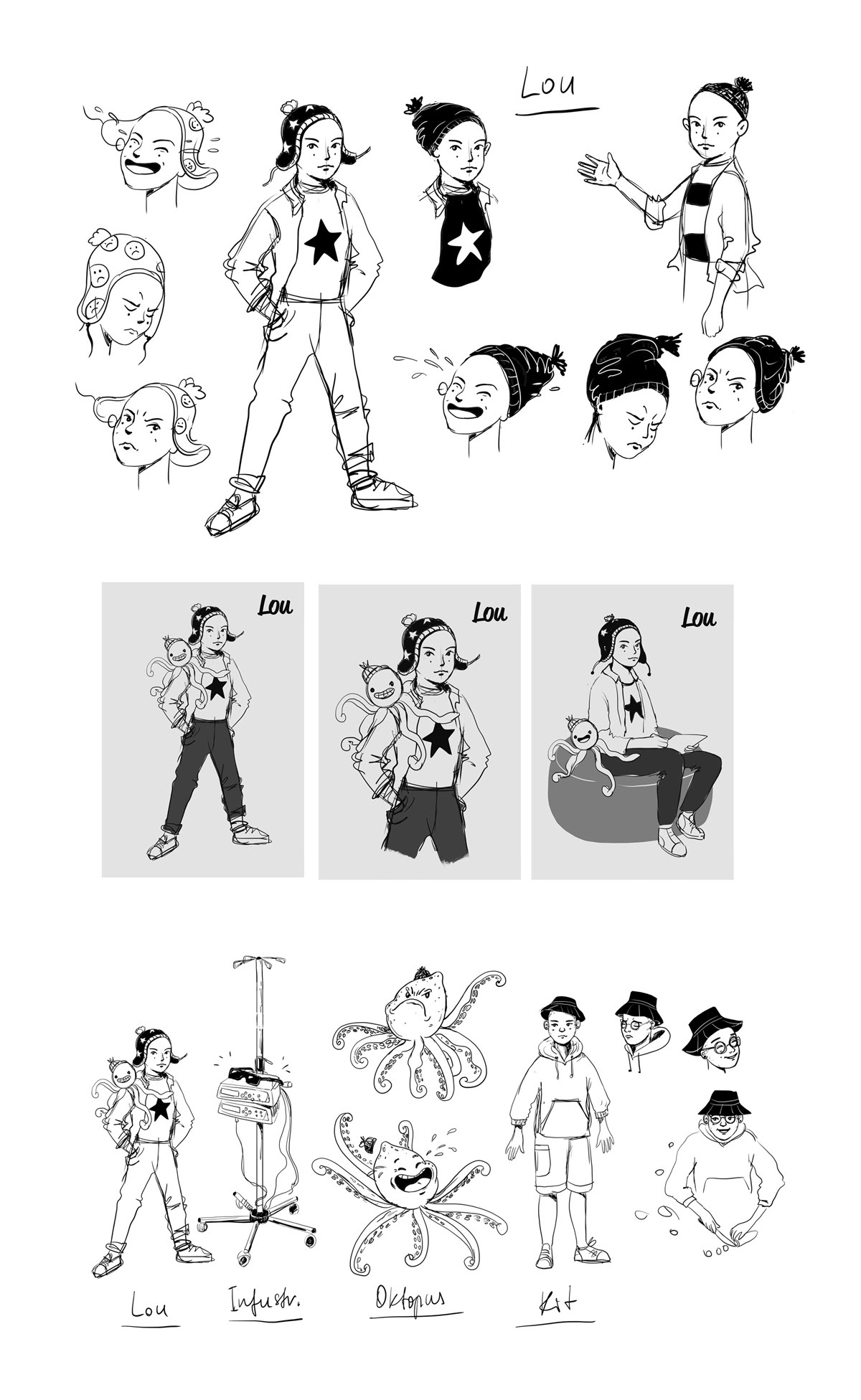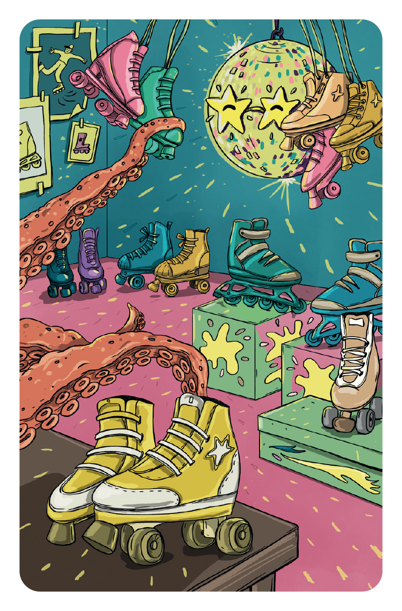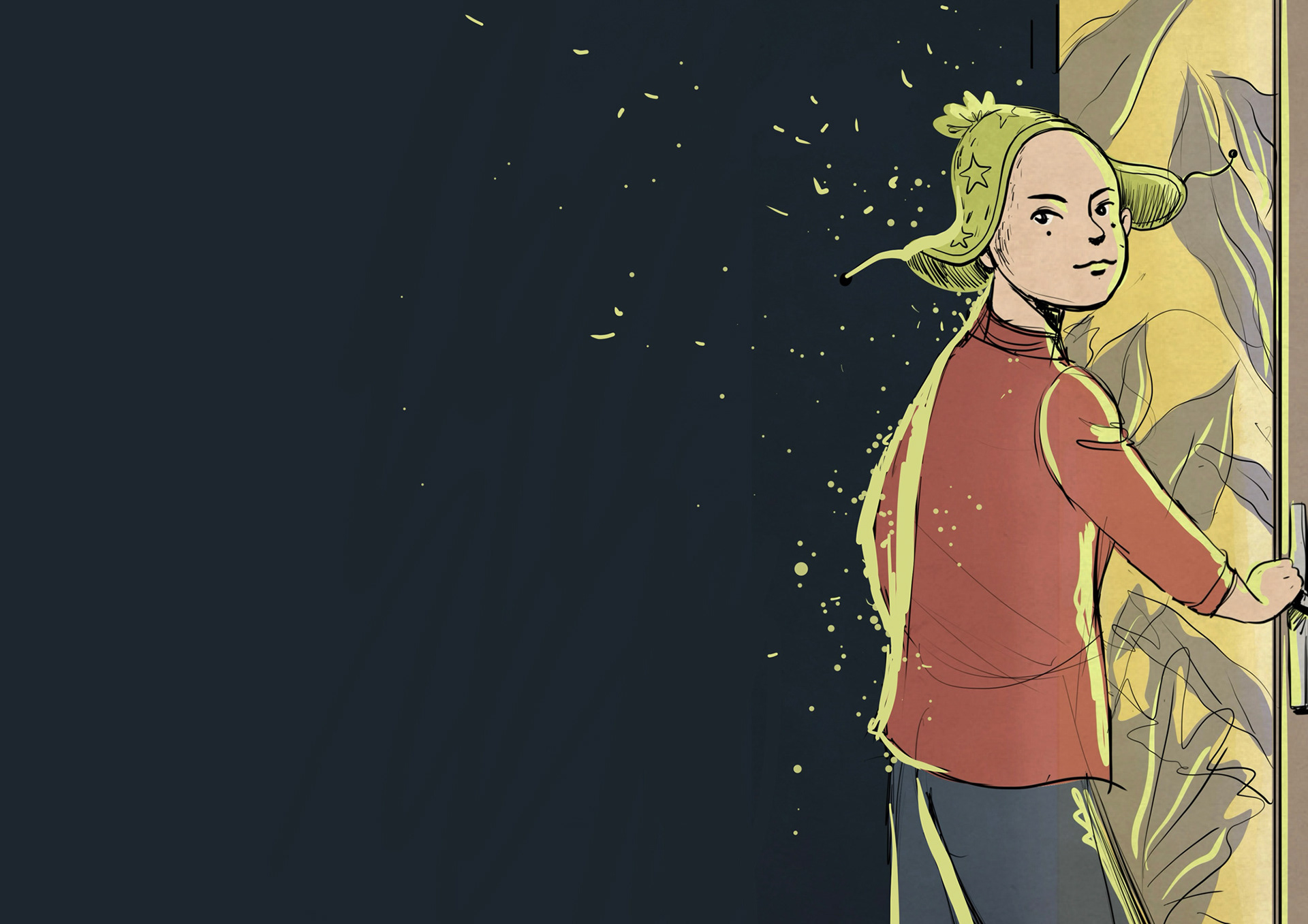 When Lou becomes seriously ill and has to go to the hospital, nothing is ever the same again. The days on the ward are grueling and exhausting until a glowing yellow line appears on the floor, leading to a mysterious door. Behind it: a corridor with countless other doors, portals to magical places. Together with an IV stand that has come to life and a mood-regulating octopus, Lou embarks on a journey where the three explore fantastic worlds full of wonders and mysterious creatures – and discover a way to connect with their own feelings.
