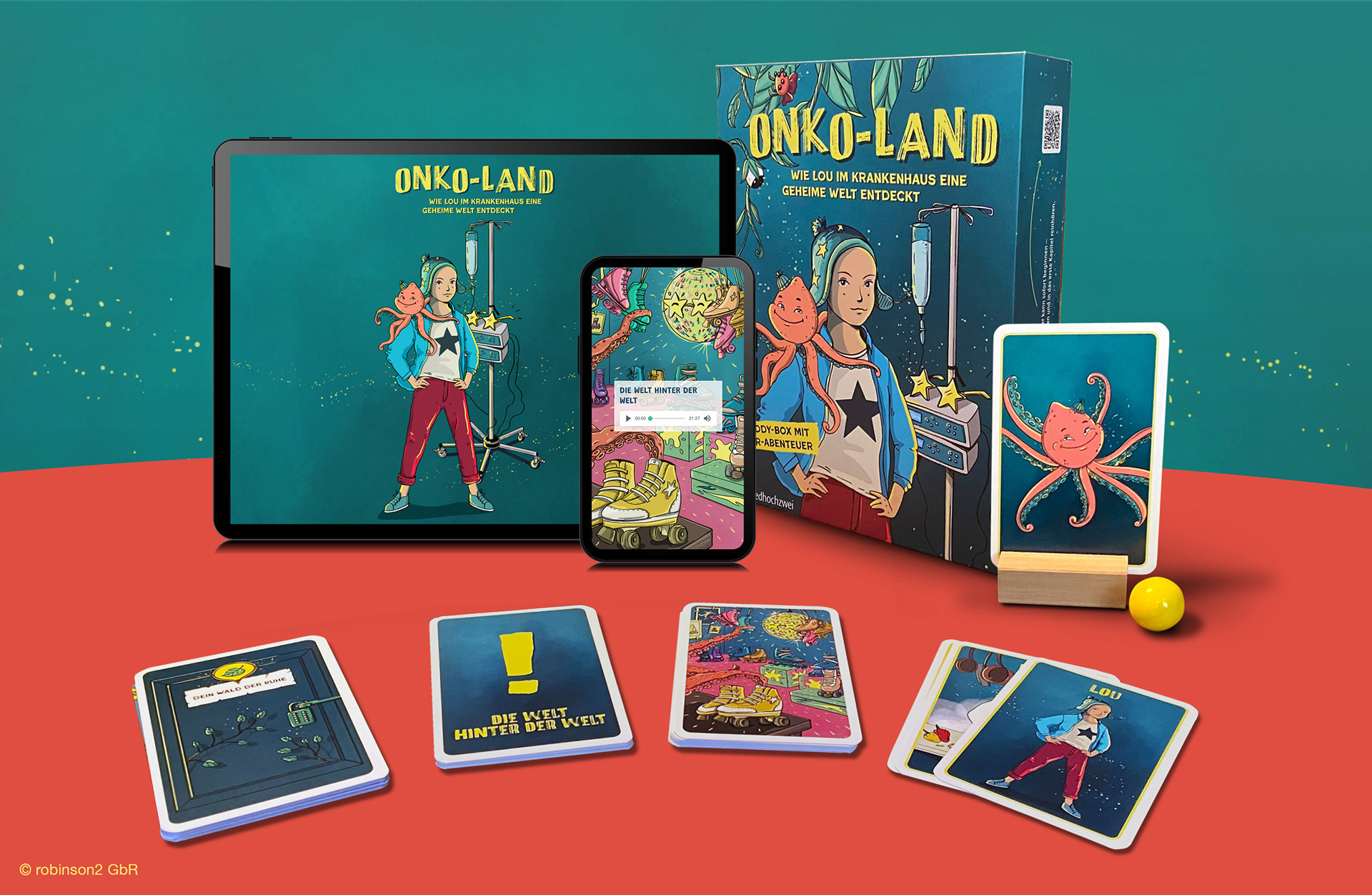 ONKO-LAND is published by the Veronika Foundation, Rottenburg, which, among other things, supports services for seriously ill people. Element 3 e. V. was commissioned with the development, and medhochzwei Verlag with the production.